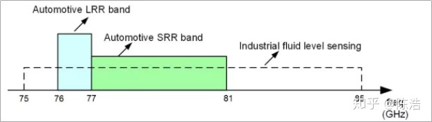 77GHz 毫米波雷達(dá)應(yīng)用頻段示意圖