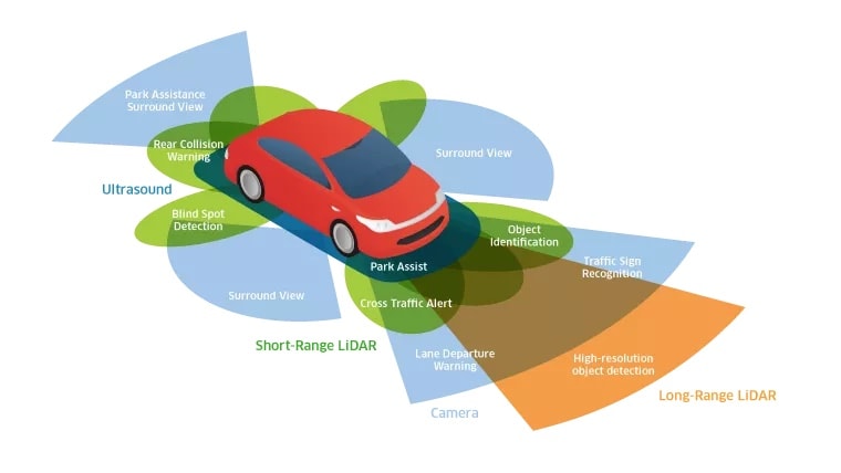 由于激光雷達(dá)使用激光和反射鏡進(jìn)行回波成像,并實(shí)時(shí)繪制周圍環(huán)境的地圖,因此其測(cè)量精度明顯高于超聲波雷達(dá)。如今,激光雷達(dá)已被應(yīng)用于許多關(guān)鍵的汽車和移動(dòng)應(yīng)用,包括先進(jìn)駕駛員輔助系統(tǒng)(ADAS)和自動(dòng)駕駛系統(tǒng)中。在實(shí)際應(yīng)用中,該技術(shù)可與其他感官數(shù)據(jù)相結(jié)合,為車輛環(huán)境中的靜態(tài)和移動(dòng)物體提供更可靠的表征。