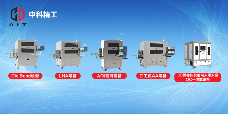 中科精工自主研發(fā)生產(chǎn)的攝像頭模組設(shè)備包括Die Bond設(shè)備、LHA高精密貼合設(shè)備、Image Sensor AOI檢測設(shè)備、全自動(dòng)AA設(shè)備、測試標(biāo)定設(shè)備等,以及3D結(jié)構(gòu)光和dTof 發(fā)射端模組AA設(shè)備、3D深度相機(jī)模組(All in One)測試設(shè)備、LIV測試設(shè)備、DOE/Diffuser檢測設(shè)備、VCSEL芯片測試設(shè)備等。